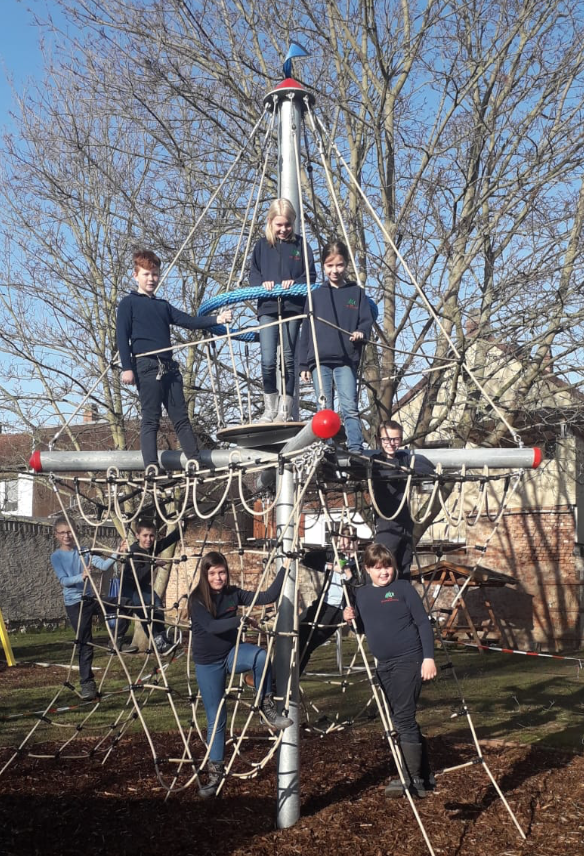 Die Schülerinnen und Schüler am Standort Heldrungen können sich zudem über eine zweite Klettermöglichkeit freuen, durch die sie auf verschiedene Auf- und Zugänge eine Rutsche erreichen und nutzen können.